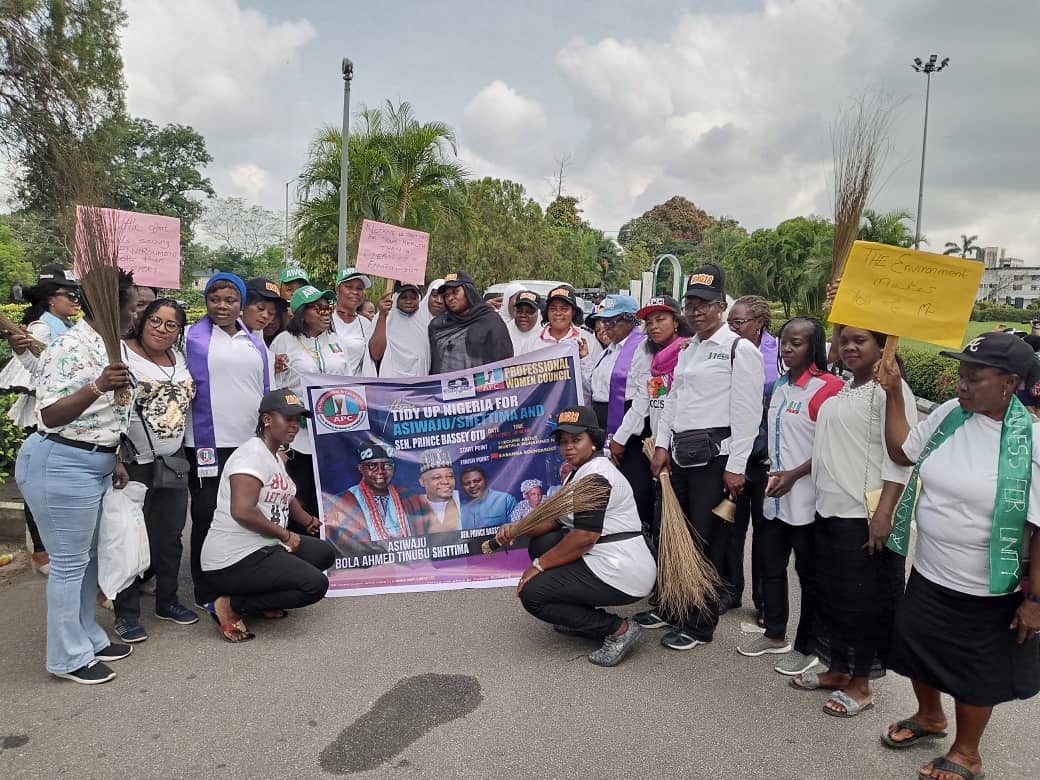 The All Progressives’ Congress, (APC) Professional Women Council has successfully organized an Environment tidy up walk in preparation to receive Asiwaju/Shettima and other APC candidates in the state.