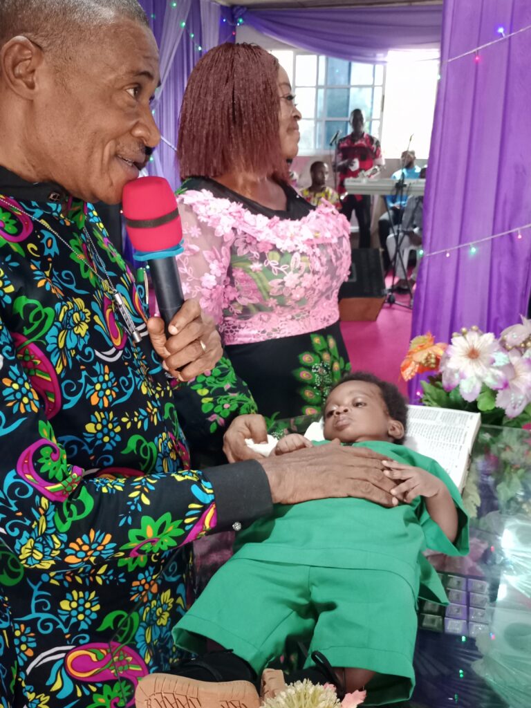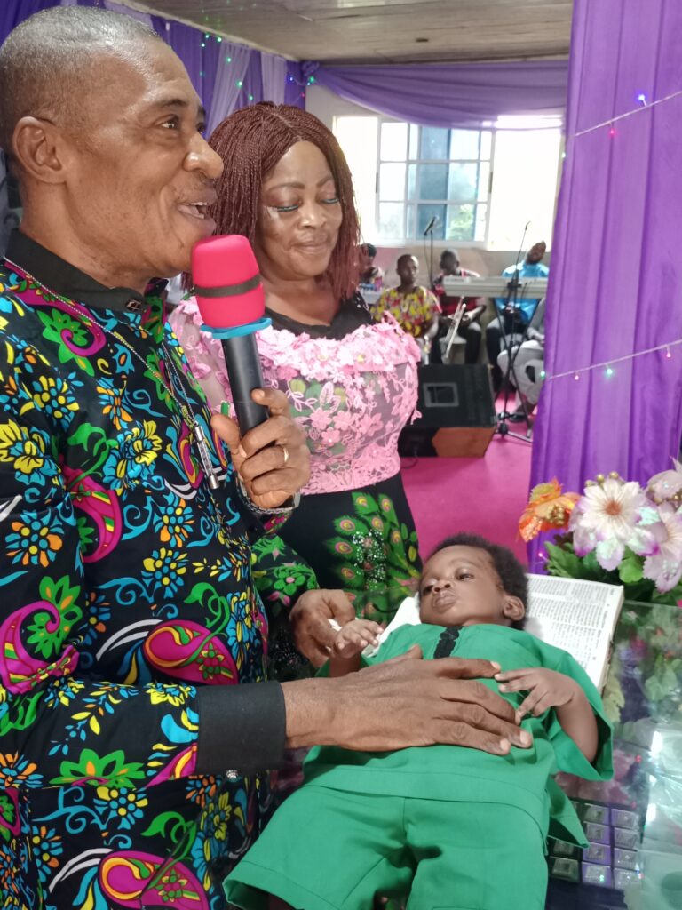 Before the child dedication of Me and Mrs. Sampson Kalu’s son, Master Great Sampson Kalu, Prophet Sunday Obi, had appreciated God for all the testifiers in the house.