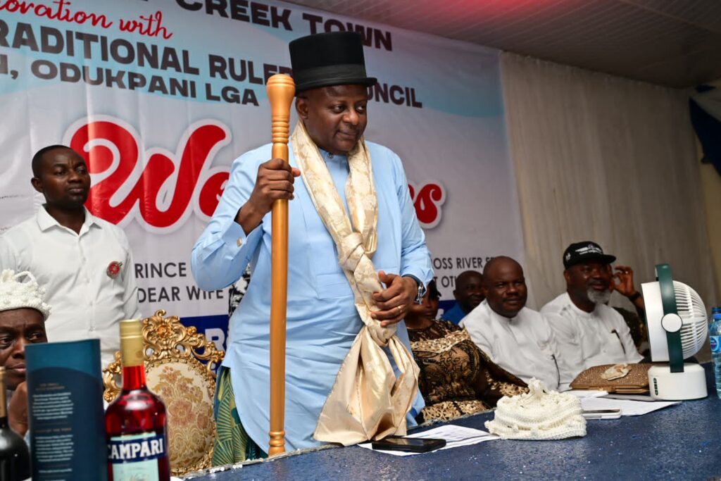At the celebration which took the semblance of a carnival, the Central Creek Town Traditional Ruler Council decided to decorate him and his wife with the prestigious traditional titles of Uforo Iboku and Utuenikang Iboku EsIt Edik respectively.