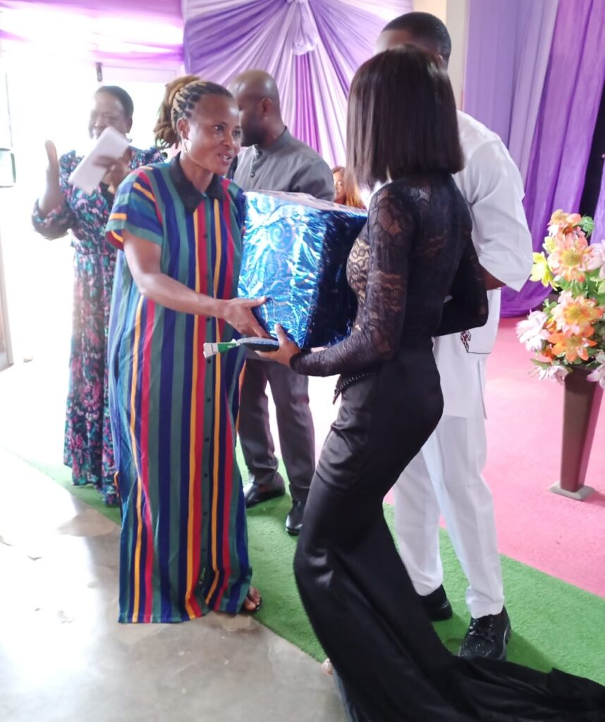 The service was full of celebration as Pst and Rev Mrs. Breakthrough Besong Lambe gave thanksgiving for their successful marriage. They were honoured with a gift and welfare package from the church too. The couple donated a Bass guitar to the church in appreciation. Also, they appreciated Mrs. Blessing, for a successful wedding too and gave her a gift and welfare package as well.